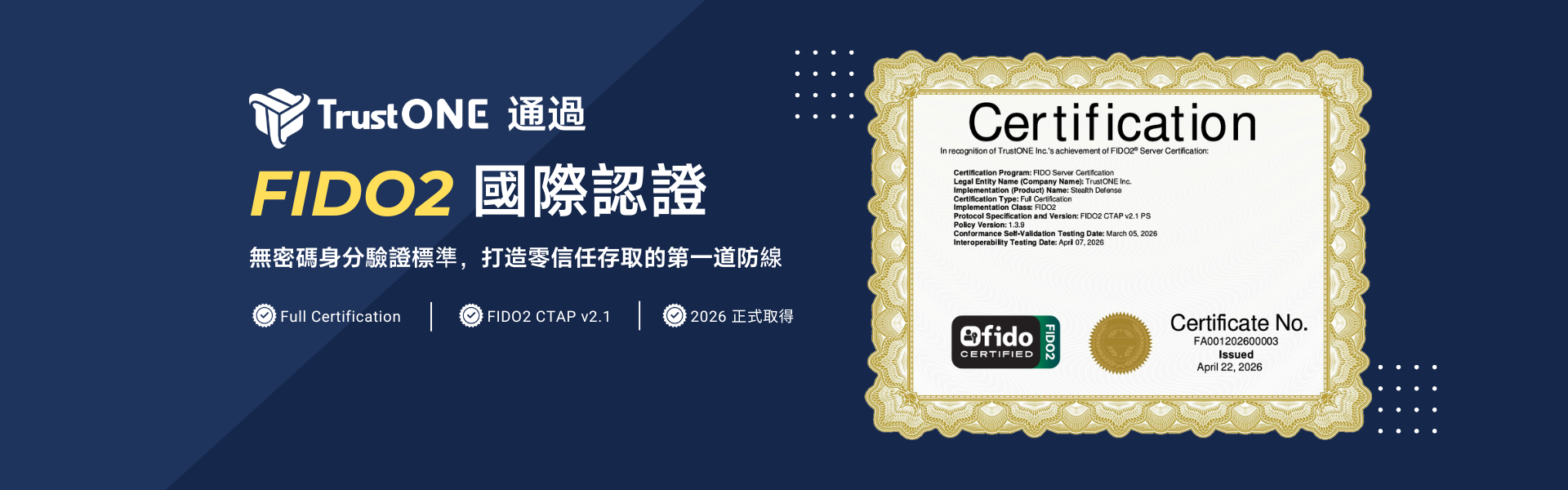 SlideTrustONE 核心主機資安韌性– 讓駭客看不到、竊不走、鎖不住Make Hackers See Nothing, Steal Nothing, Encrypt NothingSlideTrustONE 零信任匿蹤防禦系統一次通過資安院零信任三階段功能驗證( 身分鑑別/設備鑑別/信任推斷 )SlideSlide您在稽核中被提到這些項目嗎?✅ 員工外部連線有多因子認證嗎?✅ 外部廠商連線需管理者審核嗎?✅ 合作廠商連線有時效管理嗎? TrustONE 核心主機資安韌性首要防線 |讓駭客看不到、竊不走、鎖不住 駭客常透過釣魚、側錄或暴力破解竊取帳密,提權後加密或破壞核心主機。TrustONE以匿蹤連線防護:多因子取代密碼、TrustGate分權存取平台阻止提權,並隱蔽核心伺服器與備援,守護資料庫與虛擬機,讓駭客看不到、竊不走、鎖不住。 最新消息 TrustONE 盛大參與 CYBERSEC 2026!邀您親臨 C219 攤位,見證「零信任匿蹤防禦」新境界 數位轉型浪潮下,傳統邊界防禦已不足以應對精密攻擊。TrustONE 碩壹資訊 將於 2026 年 5 … TrustONE率先一次通過資安院零信任三階段驗證,創全台首家紀錄! 面對駭客攻擊手法日趨系統化,傳統資安防護已難以應付。TrustONE(碩壹資訊)旗下「零信任匿蹤防禦系統」通過數位發展部國家資通安全研究院(… 【資安警訊】新型態「合法掩護非法」滲透鏈來襲!TrustONE 以匿蹤防禦技術打造核心資產隱形防線 傳統防禦已現盲點!駭客利用「合法掩護非法」手法繞過偵測,讓 WAF 與 EDR 難以精準捕捉潛伏威脅。TrustONE 獨家「匿蹤防禦」讓核… 匿蹤連線安全 以隱形防禦為核心理念,確保每次連線都安全可信,阻斷被偵測或入侵。 ← 讓駭客「連」不到 匿蹤防護主機 運用獨家匿蹤技術,將核心系統隱形,從駭客視野中消失,防止入侵與資料外洩。 讓駭客「看」不到 → 看不見的防線,最堅實的保護 結合創新科技與隱形防禦,提高核心主機資安韌性 匿蹤連線安全 身分驗證×分權管理打造安全連線防線 OTP安全代理閘道方案 結合來源與身分驗證,搭配白名單與時段控管,為主機打造出隔離保護區。 ← 了解更多 IDP身分驗證整合方案 導入MFA與FIDO驗證機制,支援OIDC與SAML2協定,架構不變快速整合。 ← 了解更多 TrustGate分權存取平台 統一入口驗證與分權存取,集中管理登入權限,強化安全與整合效率。 ← 了解更多 零信任安全通道 隱形連線與身分驗證防止違法存取,即使遠端連線也能確保資料與系統安全無虞。 ← 了解更多 三階段零信任方案 透過身分驗證、設備驗證、信任推斷,打造符合規範的零信任三階段防護機制。 ← 了解更多 匿蹤防護主機 隱形技術守護核心主機打造零入侵的安全堡壘 防網頁竄改 以匿蹤/唯讀/復原/驗證/告警五大技術防止惡意竄改,並支援雲原生與傳統架構,全面強化網站安全。 ← 了解更多 保護備份檔案 以匿蹤技術隱藏備份與NAS通道,僅授權來源可存取,防止竄改與探測,確保關鍵資料安全無虞。 ← 了解更多 保護資料庫 以匿蹤技術隱藏資料庫檔案,未授權程式無法讀取或加密,就地保護不中斷運作,並全程監控通報異動。 ← 了解更多 保護Hyper-V虛擬主機 以匿蹤技術隱藏虛擬機映像檔,防止駭客偵測與加密,阻斷連鎖攻擊,確保關鍵系統穩定與營運持續。 ← 了解更多 想瞭解如何強化核心主機資安韌性? 專人與我聯絡 索取技術文件